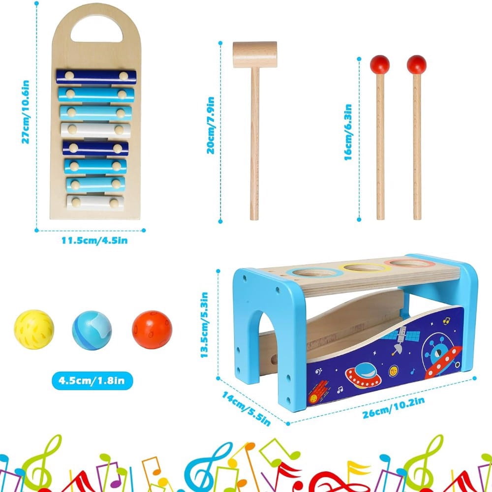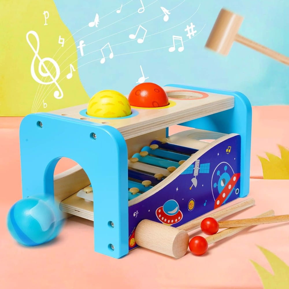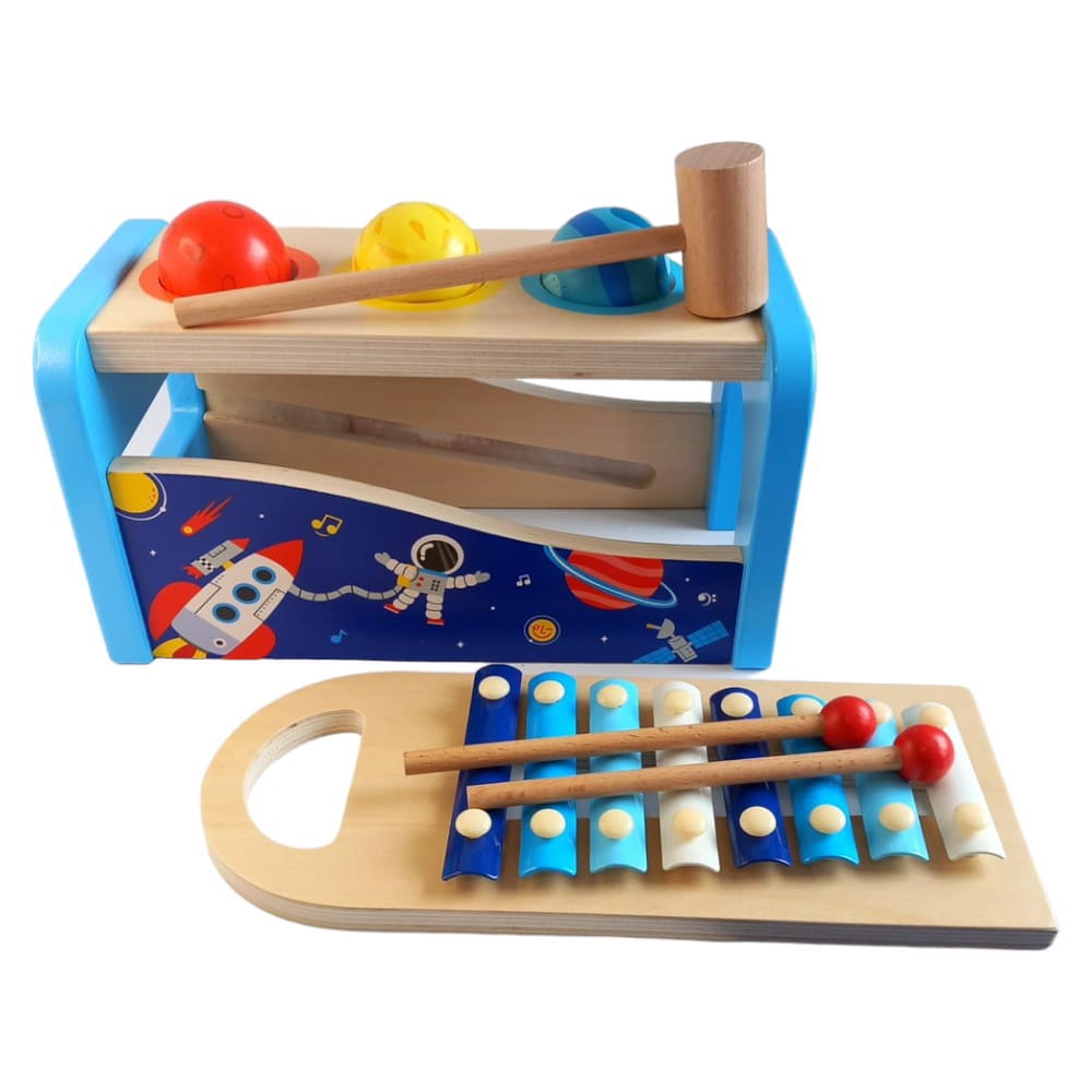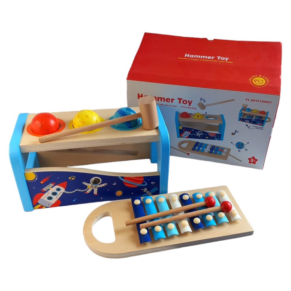 Ksylofon z młotkiem to wszechstronna, drewniana zabawka muzyczna, idealna dla dzieci w wieku od 1 do 3 lat. Zabawka łączy w sobie funkcję tradycyjnego ksylofonu z młotkiem i piłeczkami, co czyni ją doskonałym narzędziem edukacyjnym, rozwijającym zdolności muzyczne oraz koordynację ruchową dzieci.