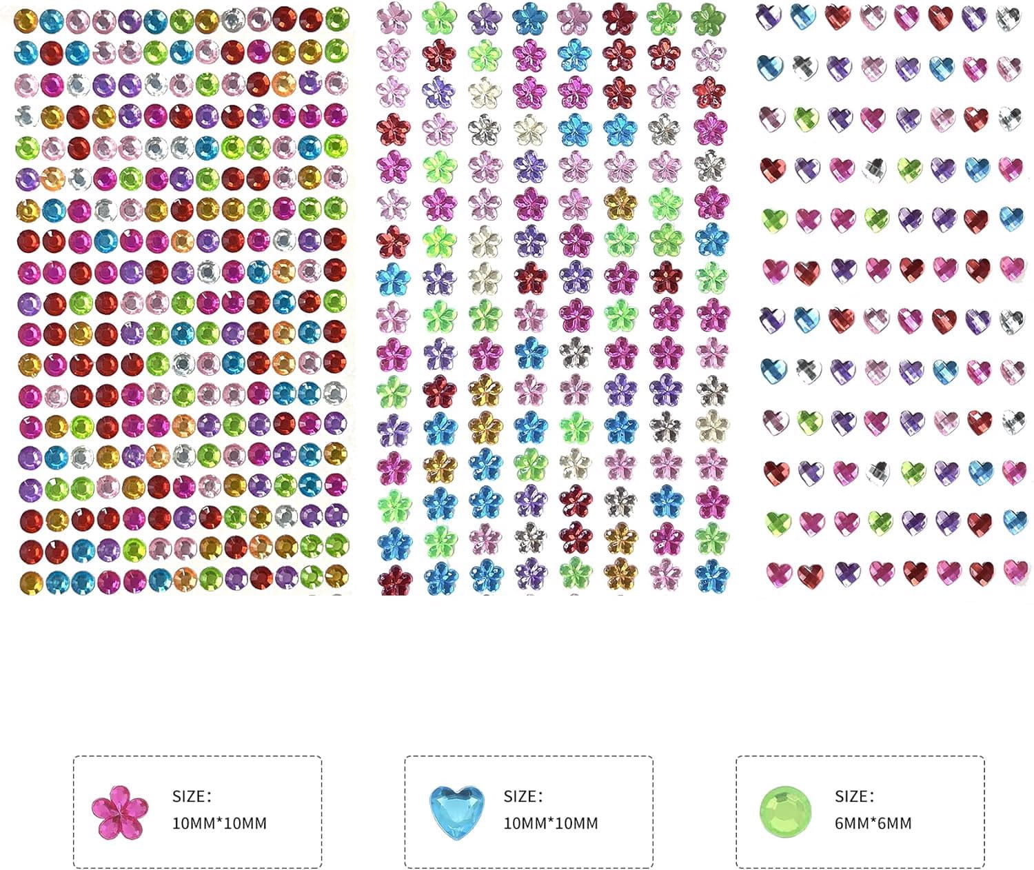 3 x naklejki z diamentami (kropki, kwiaty, serca)