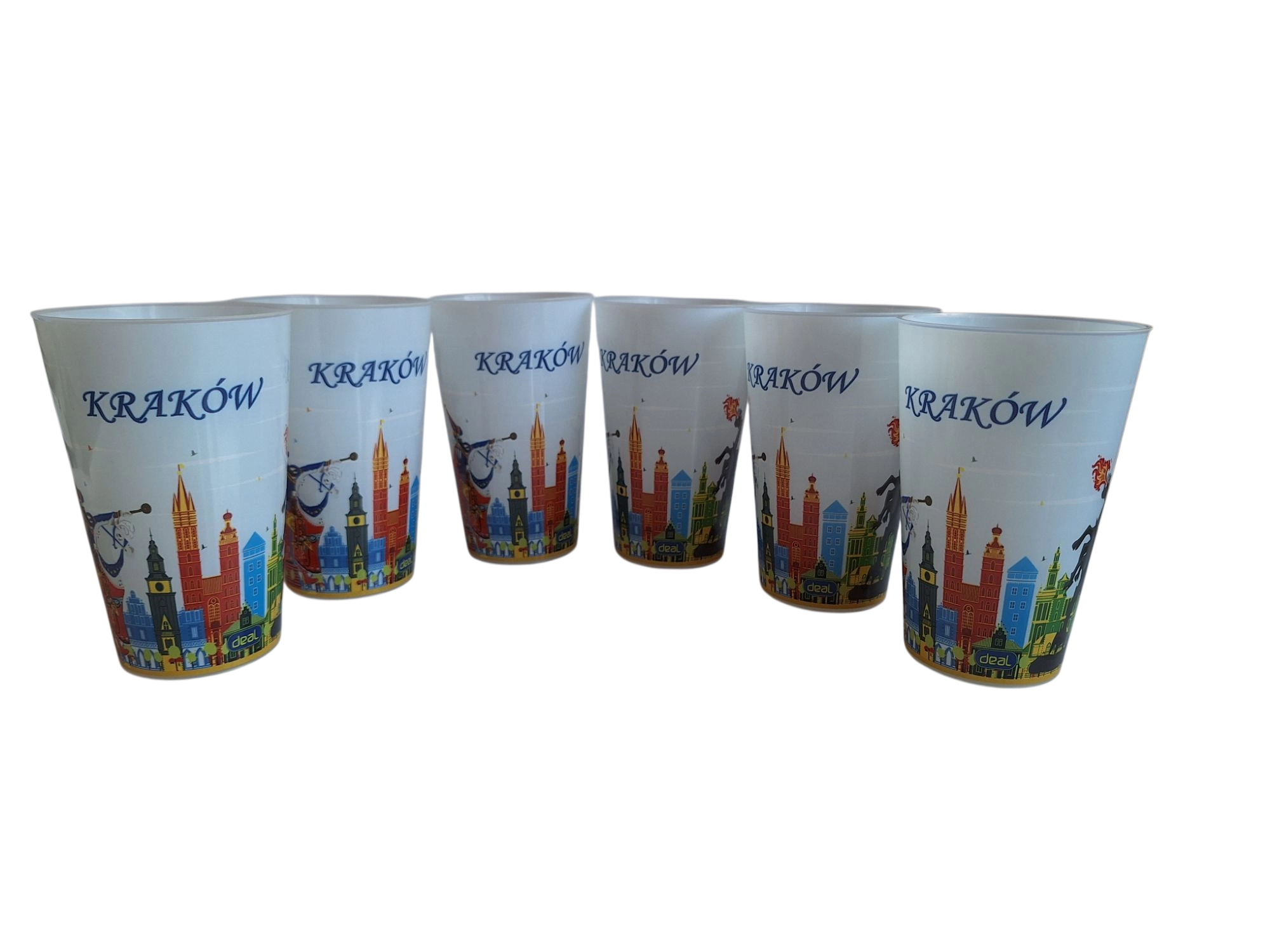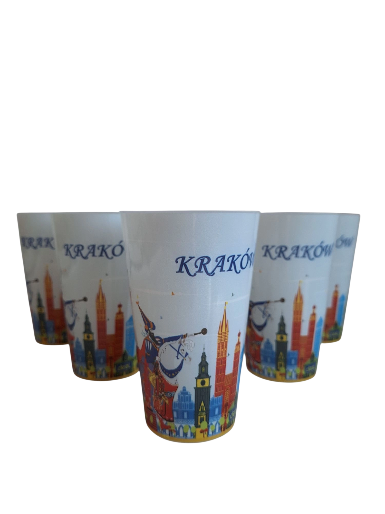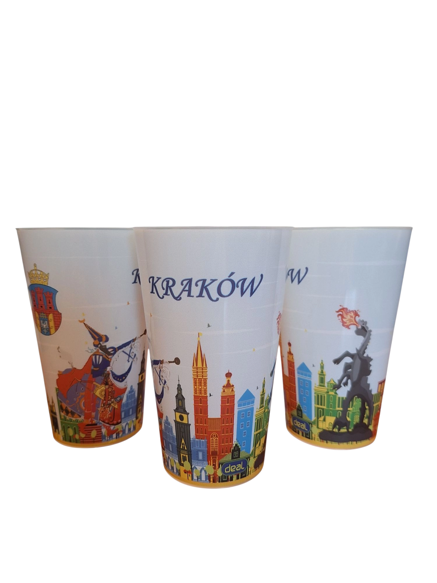 Kubek 400 ml wielokrotnego użytku z nadrukiem „Kraków” to praktyczny i trwały kubek wykonany z bezpiecznego dla żywności polipropylenu (PP). Lekka, odporna na uszkodzenia konstrukcja sprawia, że świetnie sprawdzi się podczas wydarzeń plenerowych, festiwali czy w gastronomii. Kolorowy nadruk z motywem charakterystycznych zabytków Krakowa nadaje mu wyjątkowego, pamiątkowego charakteru.
