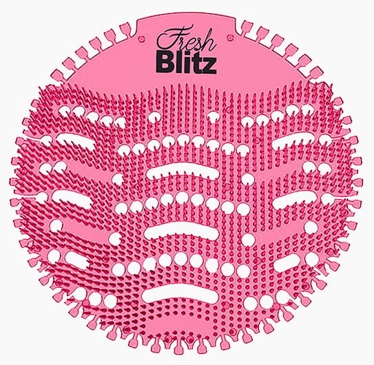 Wkładki zapachowe jednocześnie zabezpieczają przed zapchaniem się odpływu i pasują praktycznie do większości pisuarów wodnych i bezwodnych.