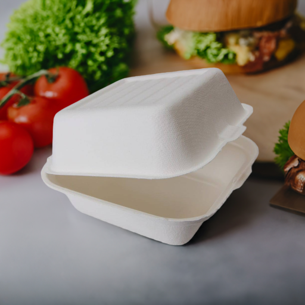 Pojemnik na burgera z pulpy trzciny cukrowej, ekologiczny.