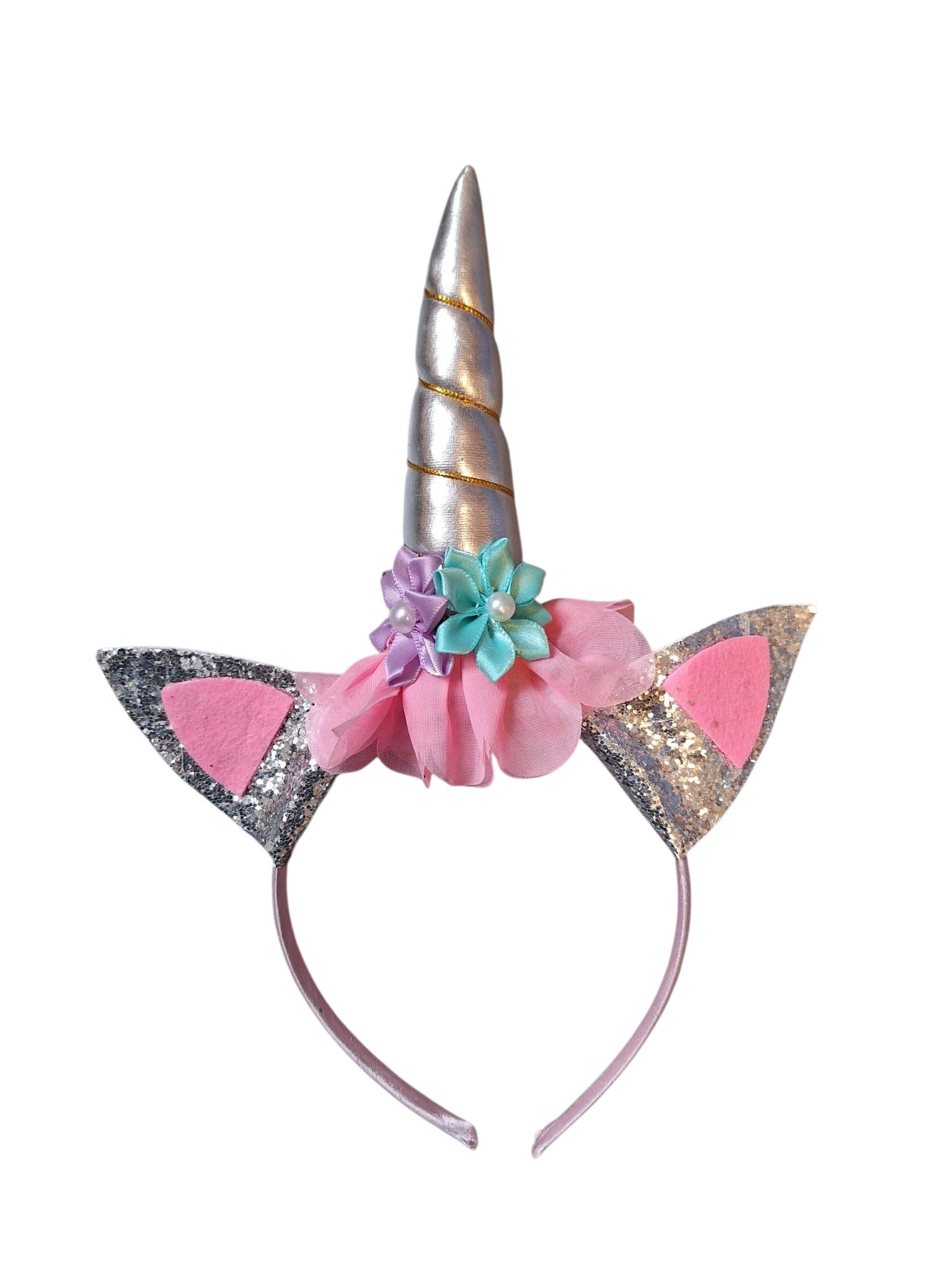Opaska jednorożec srebrna róg uszy kostiumowa przebranie dla dzieci