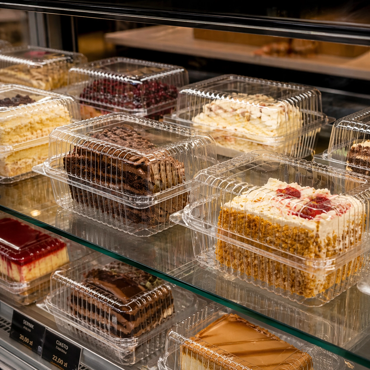 do serwowania, przechowywania i transportu ciast, tortów, deserów, sałatek i garmażerki