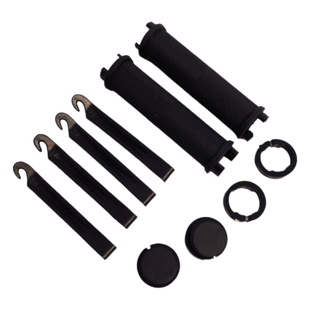 Nasze uchwyty do rowerów górskich są dostarczane ze śrubokrętem i 2 uchwytami do rowerów górskich oraz 2 osłonami kierownicy i 4 łyżkami do opon.