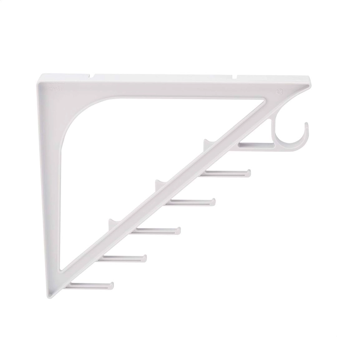 Wspornik do szafki (duży, 2 szt.) obsługuje dowolną półkę o wysokości do 38 cm (półka nie wchodzi w skład zestawu). Zawiera zintegrowany uchwyt do wieszania ubrań.