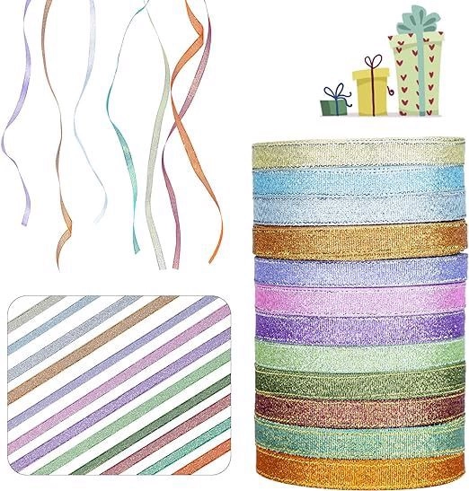 Wstążki do pakowania prezentów: opakowanie zawiera 12 rolek po 270 metrów wstążek bożonarodzeniowych, każda rolka ma długość 22,5 metra. Posiada 12 kolorów. Zawiera białą wstążkę, czerwoną wstążkę, niebieską wstążkę i inne kolory odpowiednie do dekoracji świątecznych.