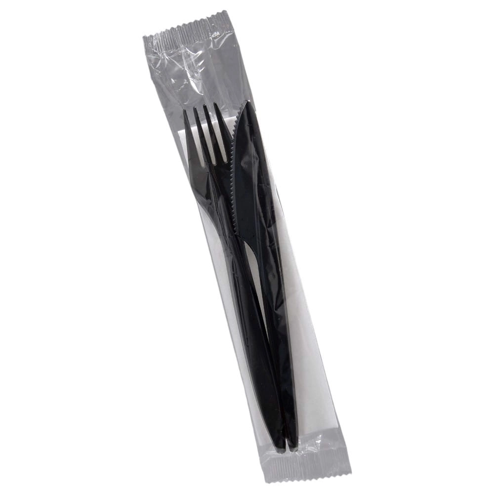 Zestaw Sztućców Premium widelec, nóż, serwetka czarne 350szt | 16401