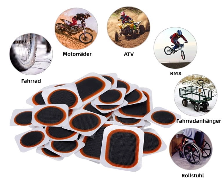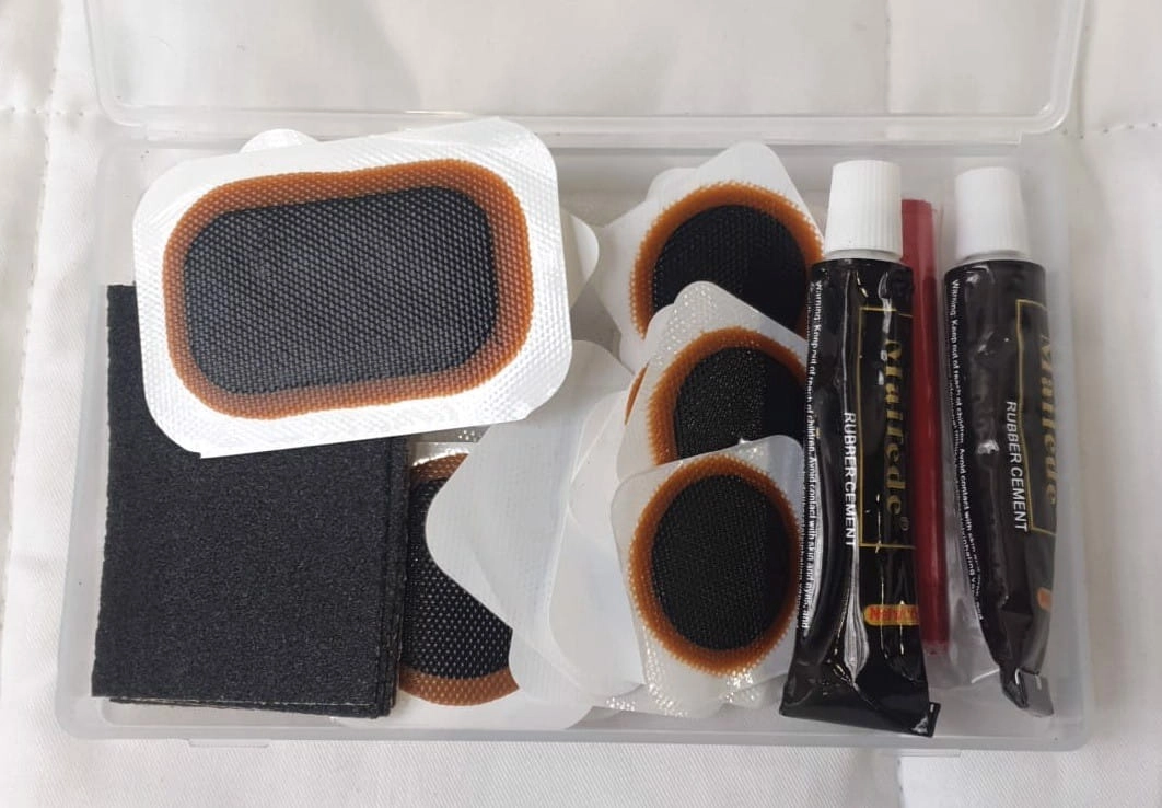 Kompaktowy i Przenośny: Zestaw jest dostępny w trzech różnych rozmiarach wulkanizowanych łat, pasujących do różnych rozmiarów dętek rowerowych. Zestaw jest przechowywany w wytrzymałym plastikowym etui, co czyni zestaw kompaktowym i przenośnym.